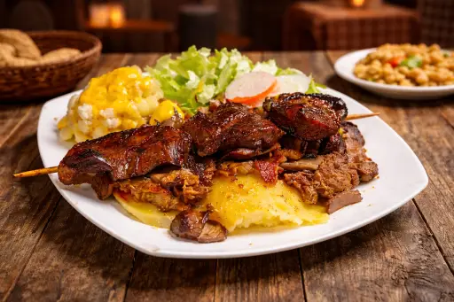 Generosa porción de anticuchos.